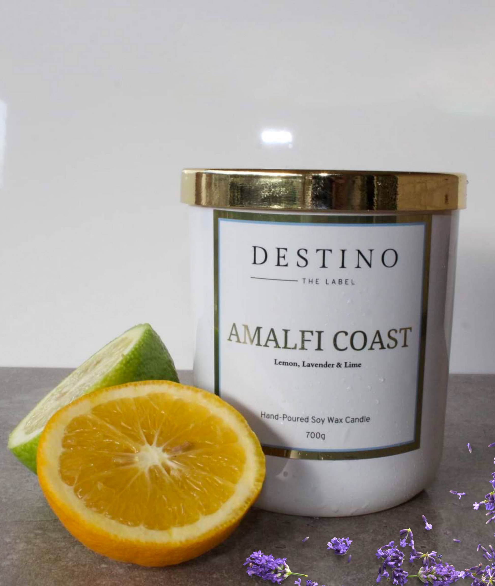 The Amalfi Coast Candle has fresh notes of Lime, Lavender & Amber to add a earthy atmosphere to your home.