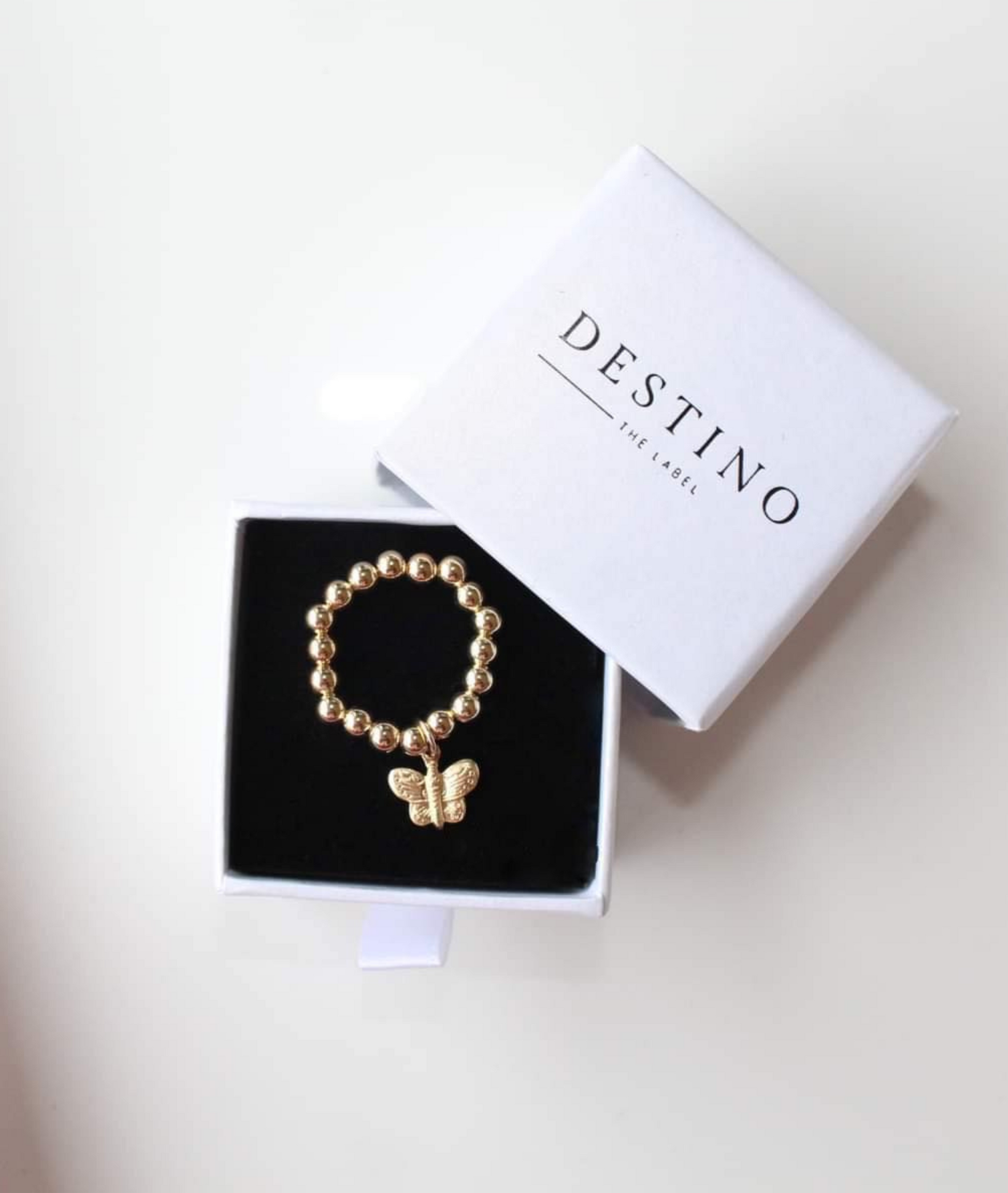 A standout everyday piece with a lot of meaning! These butterfly rings are mounted on strong elastic which makes it so easy to slip on and off.