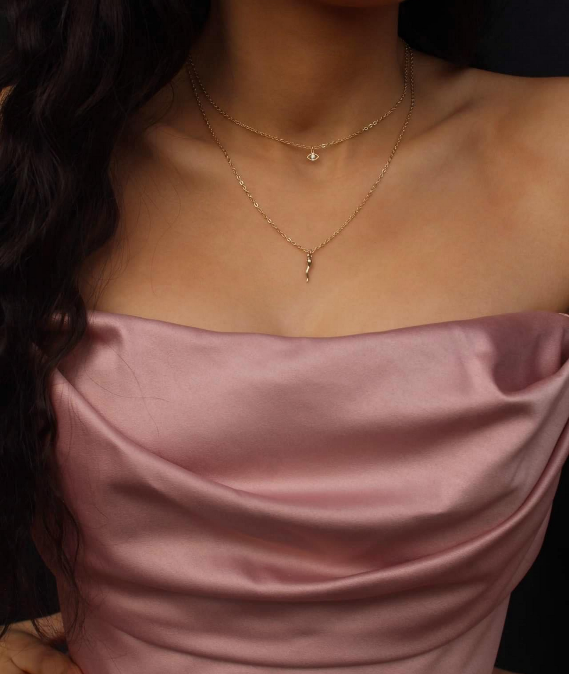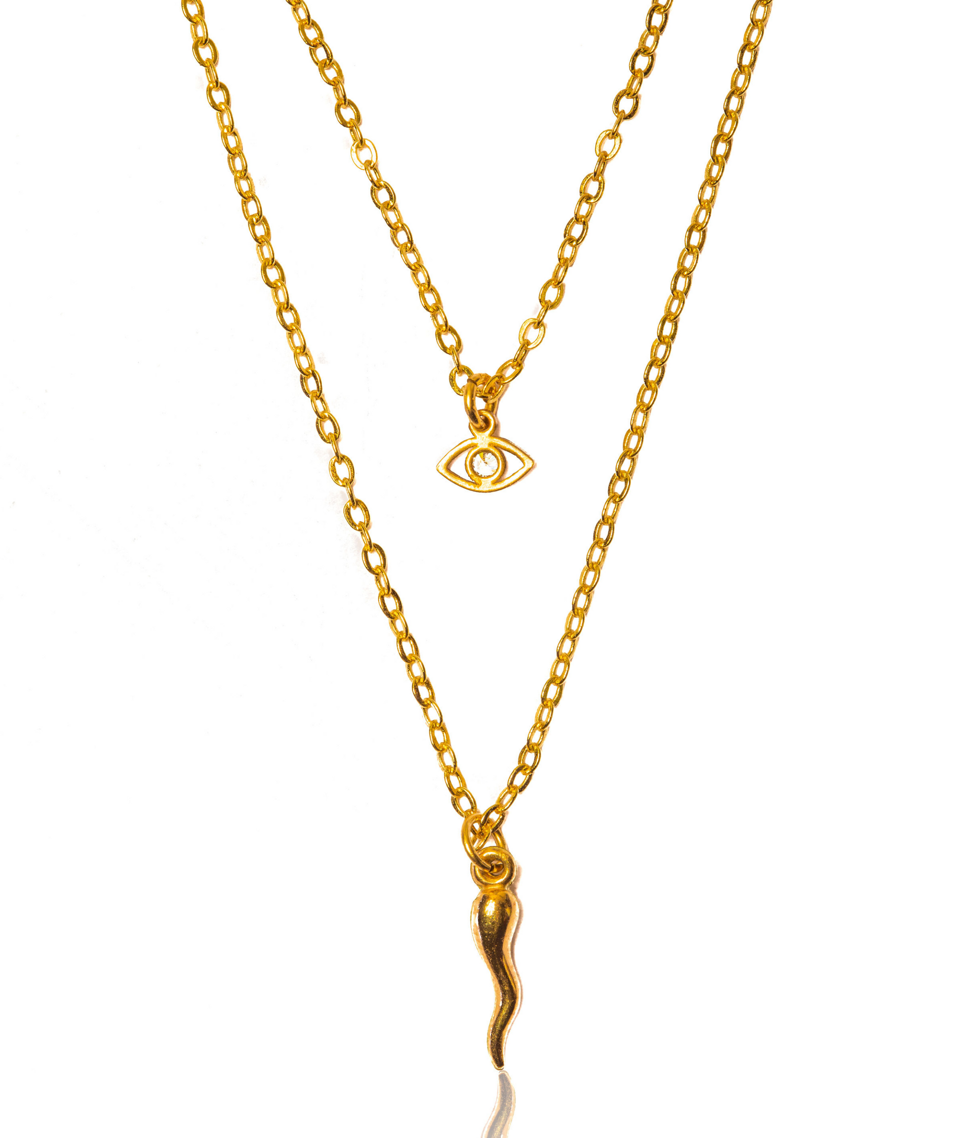 This gorgeous 14k Gold Filled ‘Golden Protector Necklace’ is one of our personal favourites! It's elegant Evil Eye CZ Charm combined with the Cornicello Charm adds a little layered statement and sparkle to your outfit. It's perfect for everyday wear as it's waterproof, hypoallergenic, lightweight & provides that extra layer protection from evil energy.