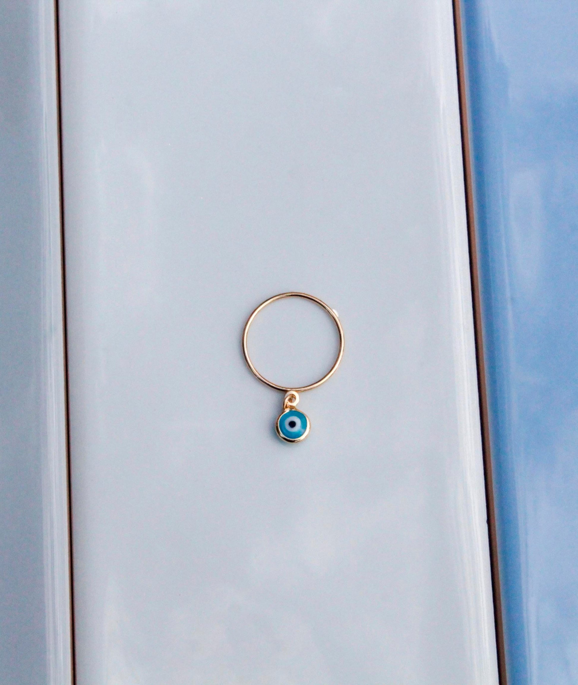 This 14k Gold Filled ‘Eyes Out Ring’ is the perfect minimal addition to your jewellery collection! It's tiny detail adds a little colour to your outfit & it's perfect for everyday wear as it's waterproof, hypoallergenic and lightweight. The 'Eyes Out Ring' will provide an extra layer of protection from evil energy.