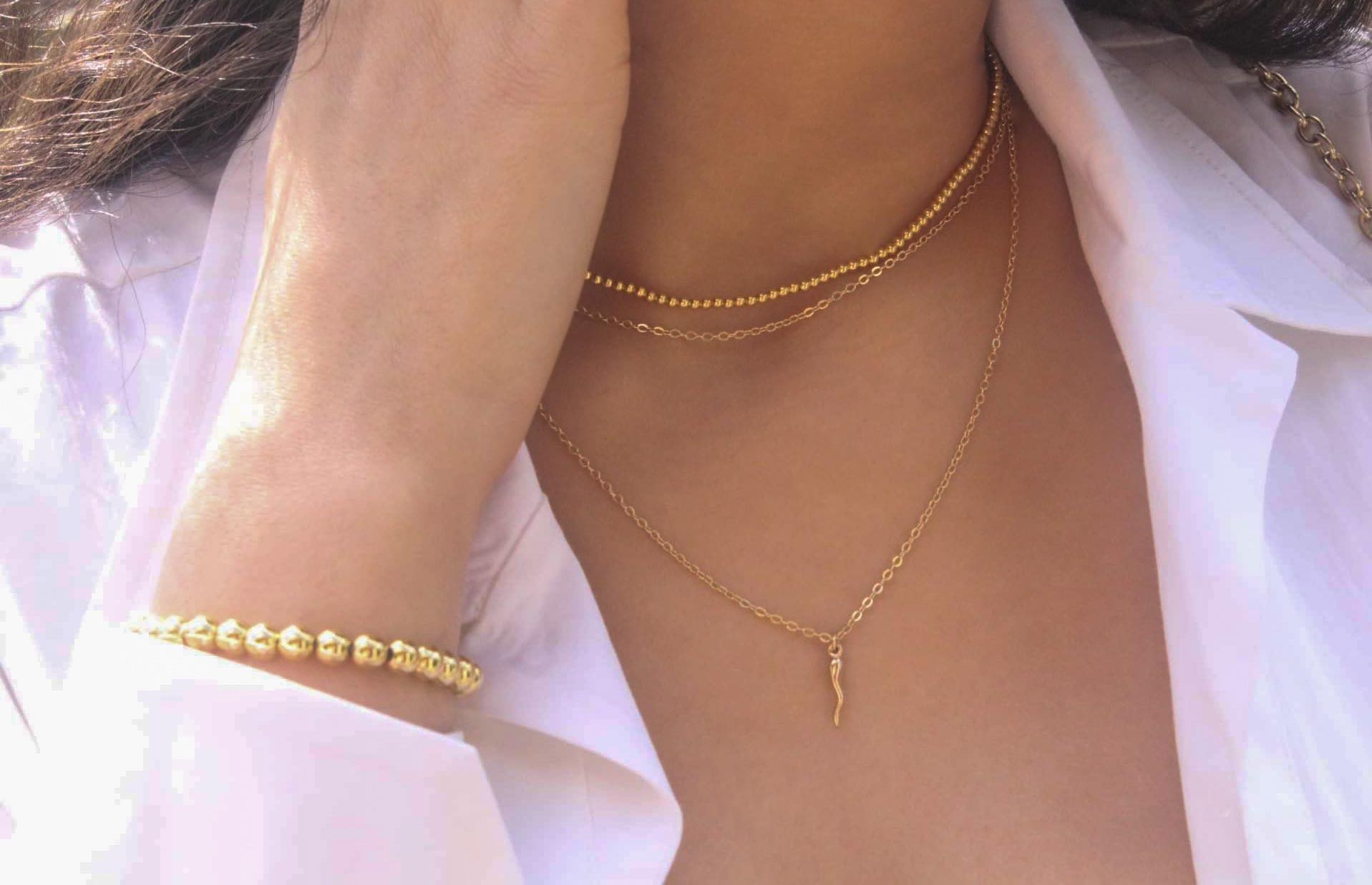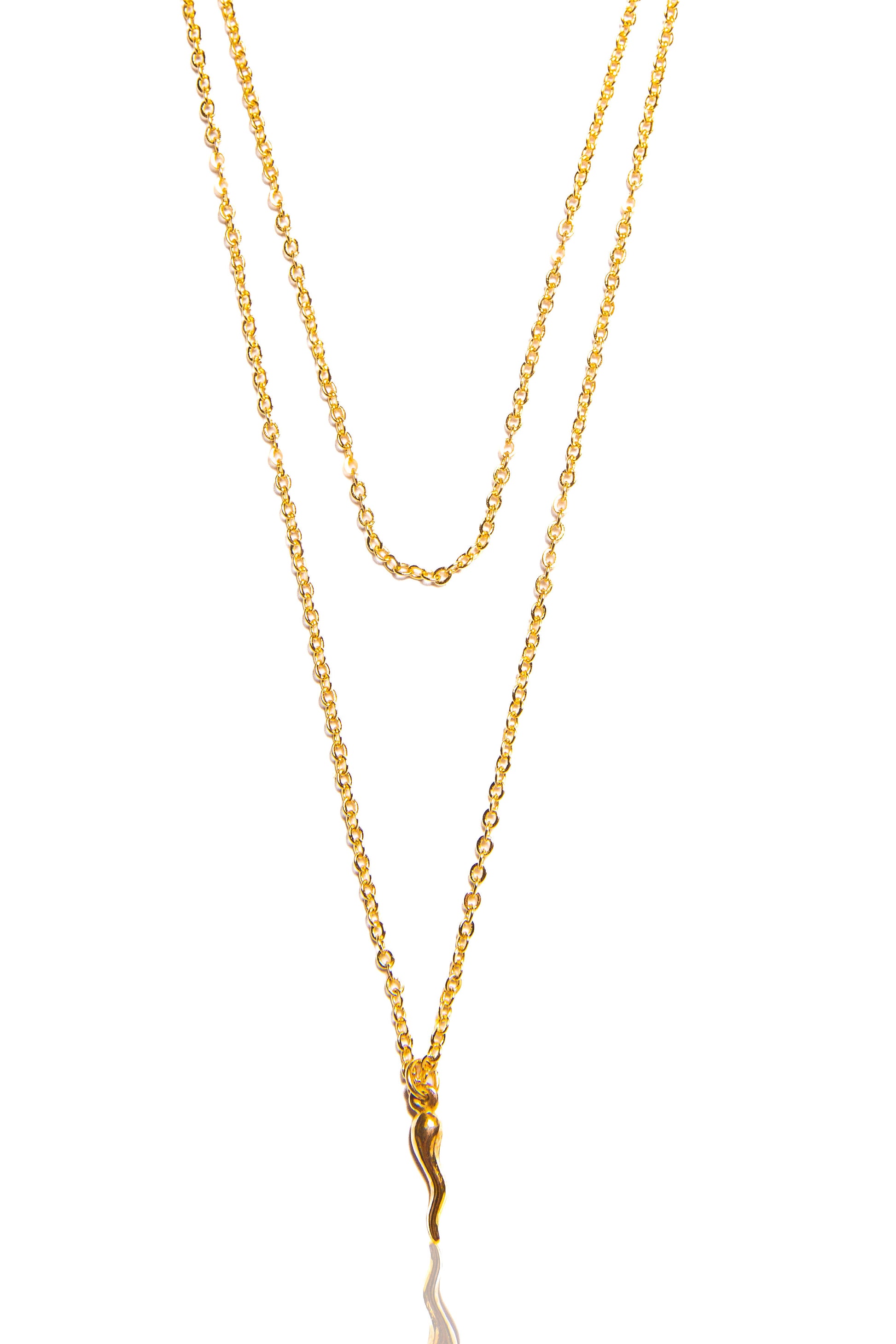 This ‘Layered Cornicello Necklace’ is a modern twist on a European staple. This piece comes with 2 different length chains and a Cornicello Charm to add a little extra to your necklace. This necklace will protect you from evil energy & bring luck into your life.