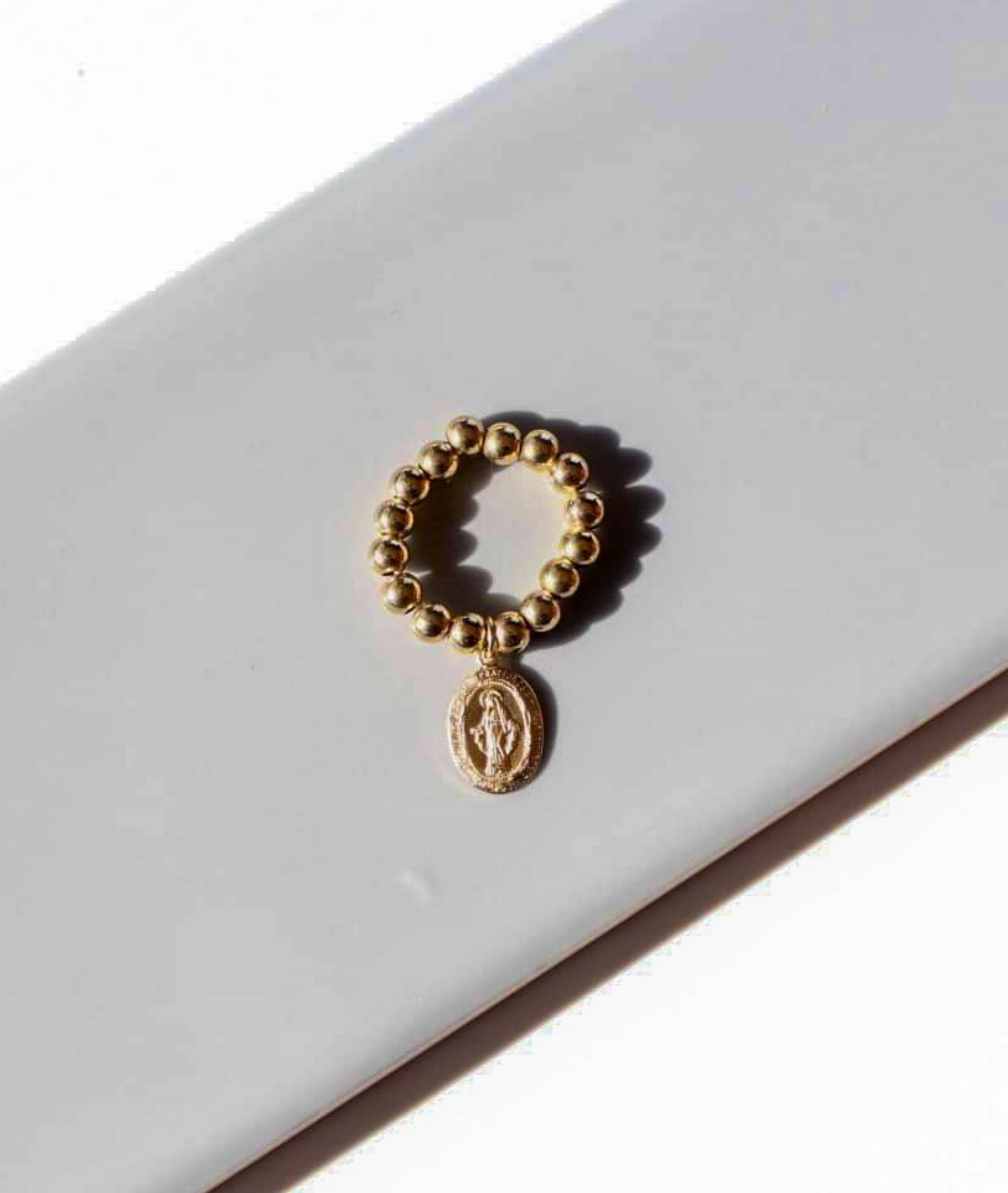 Our beaded Mary Ring is the perfect everyday piece! Made on a strong & durable elastic this timeless piece is waterproof & tarnish resistant.