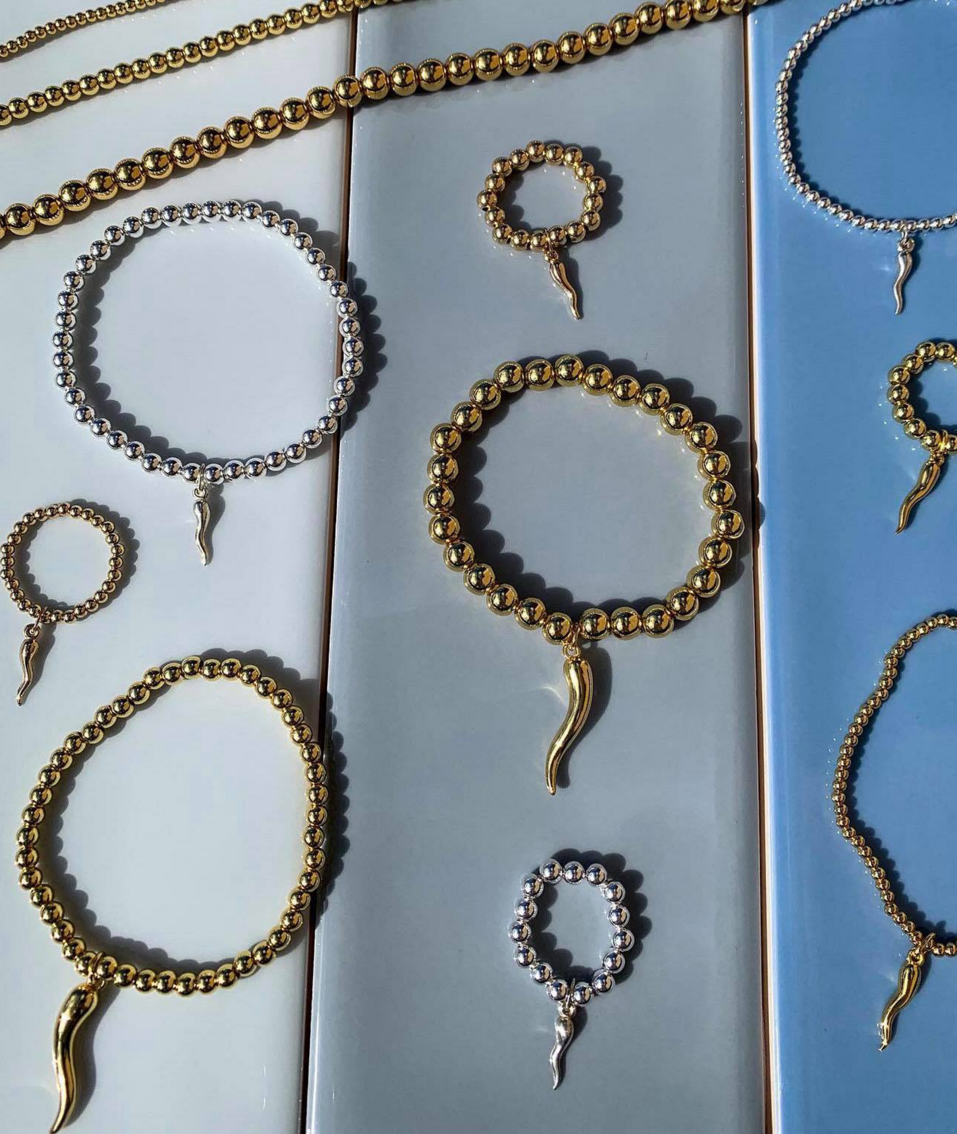 These ‘Protect Me Bracelets’ are a must have in our Gold & Silver Series. These beaded bracelets are the prefect everyday wear and are designed purposely for those bella's on the go. Our elastic makes it so easy to just slip on and off, whether you want more of a statement piece with the 6mm beads of more of a delicate design with the 2.5 mm beads, there so many options available for you.