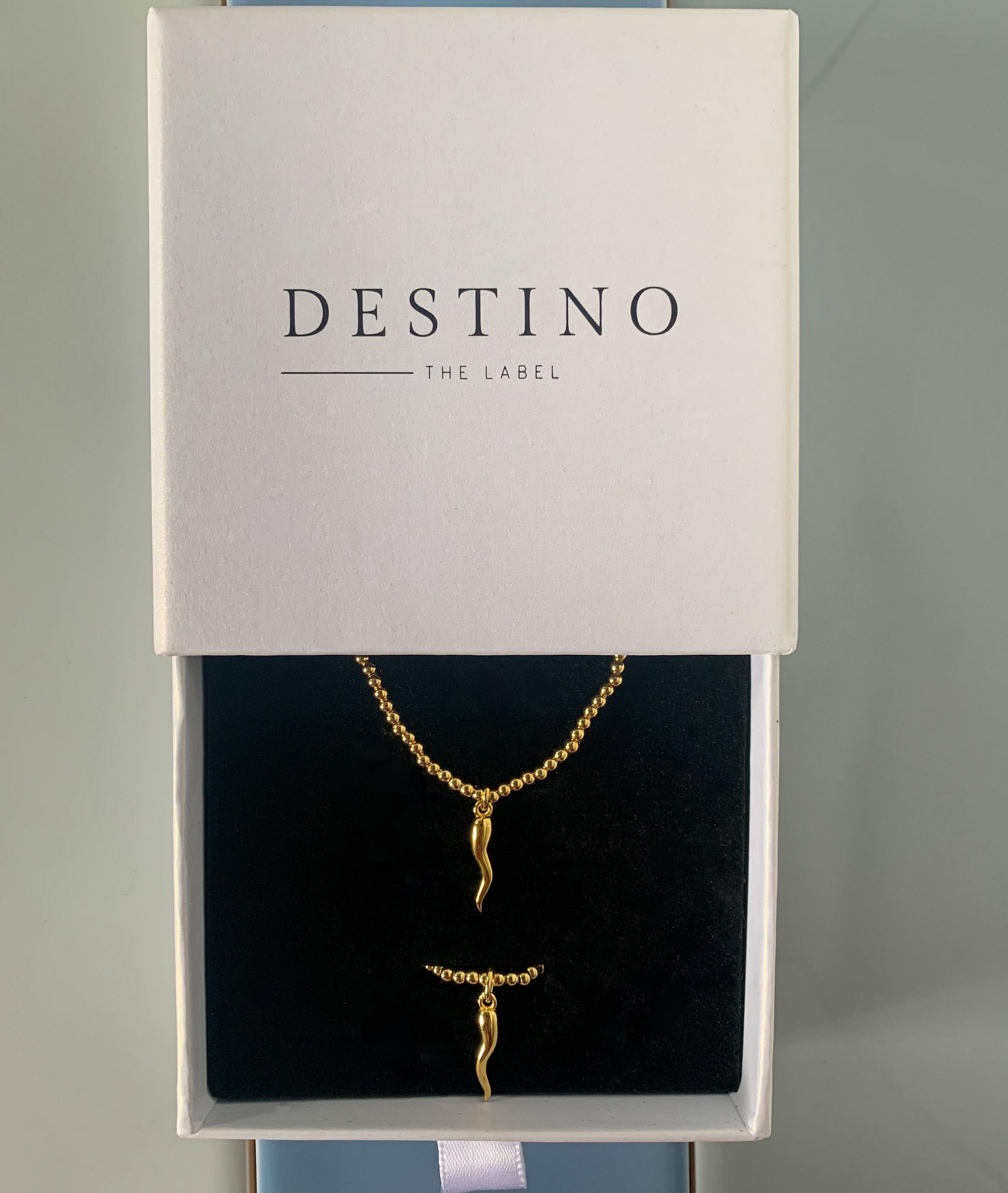 - All Jewellery Pieces come with a Microfiber Cleaning Cloth & a Destino The Label Keepsake Jewellery Box